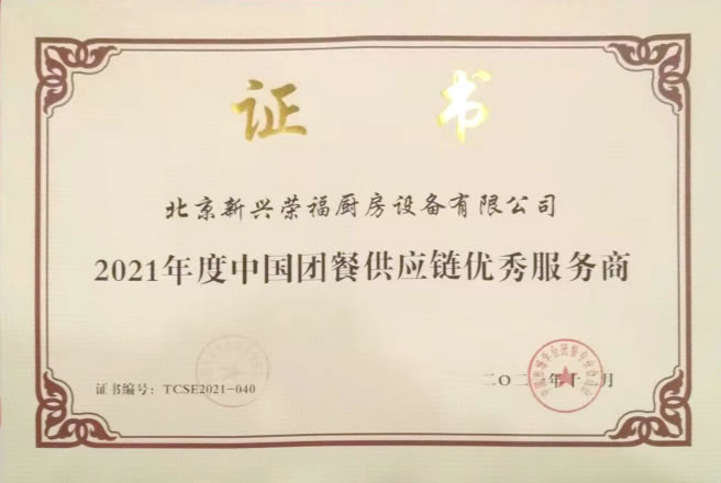 北京新興榮福廚房設備有限公司(xinxingrongfu.com)受邀參加此次大會,并獲得了《2021年度中國團餐供應鏈優秀服務商》稱號。